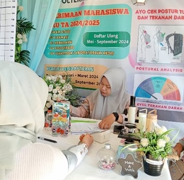 Poltekkes Borneo Citra Medika memberikan pelayanan cek tekanan darah, pemeriksaan postur tubuh dan stand promosi SPMB (Seleksi Penerimaan Mahasiswa Baru) tahun ajaran 2024/2025.