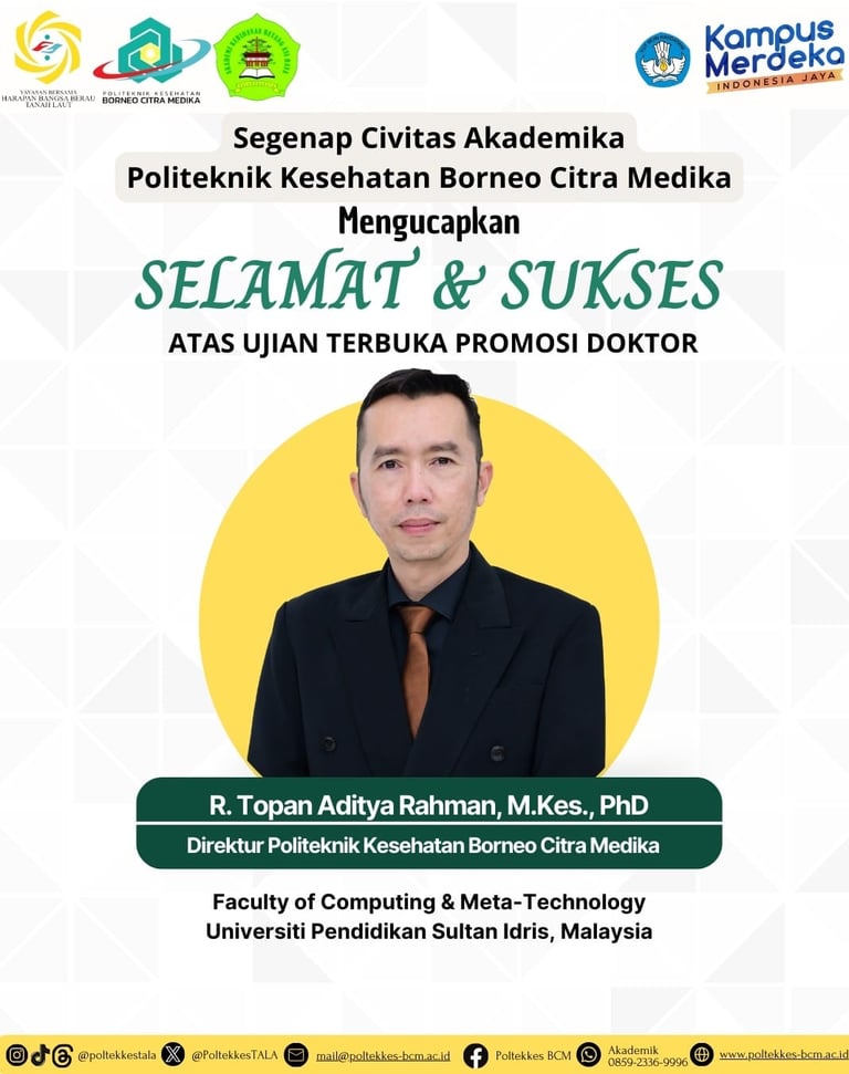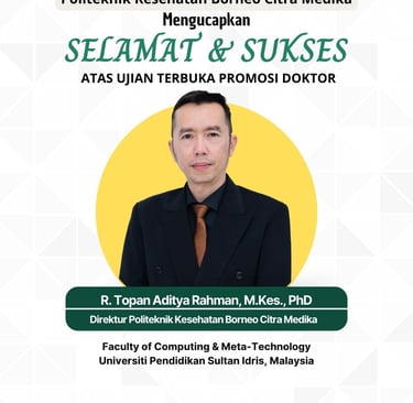Selamat atas diraihnya gelar Doktor dari Bapak R. Topan Aditya Rahman, M. Kes., PhD.
